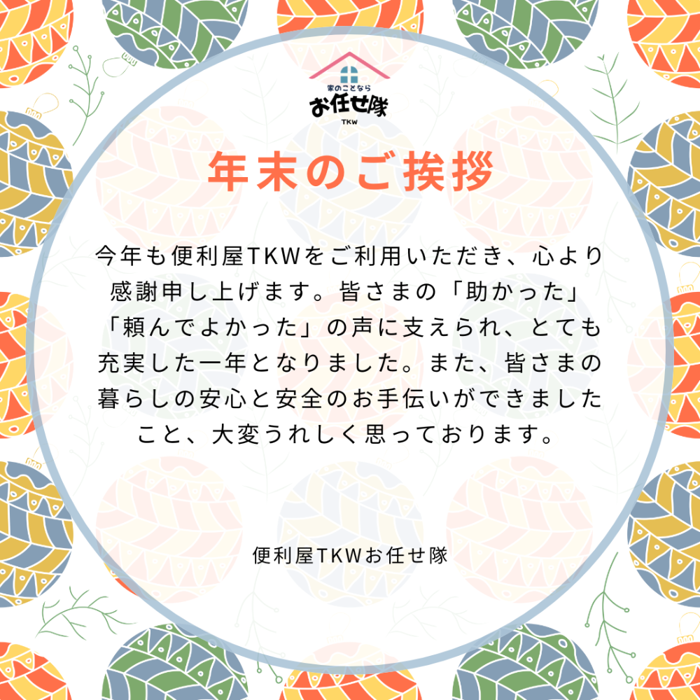 来年も、より一層ご満足いただけるサービスの提供を目指し、スタッフ一同努めてまいります。
